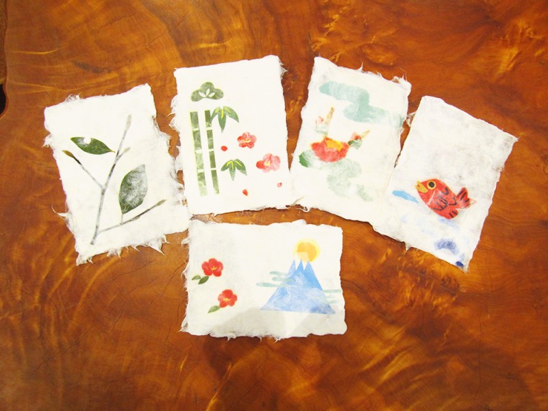 和紙の原料「コウゾ」を使って、年賀状を作る体験です。